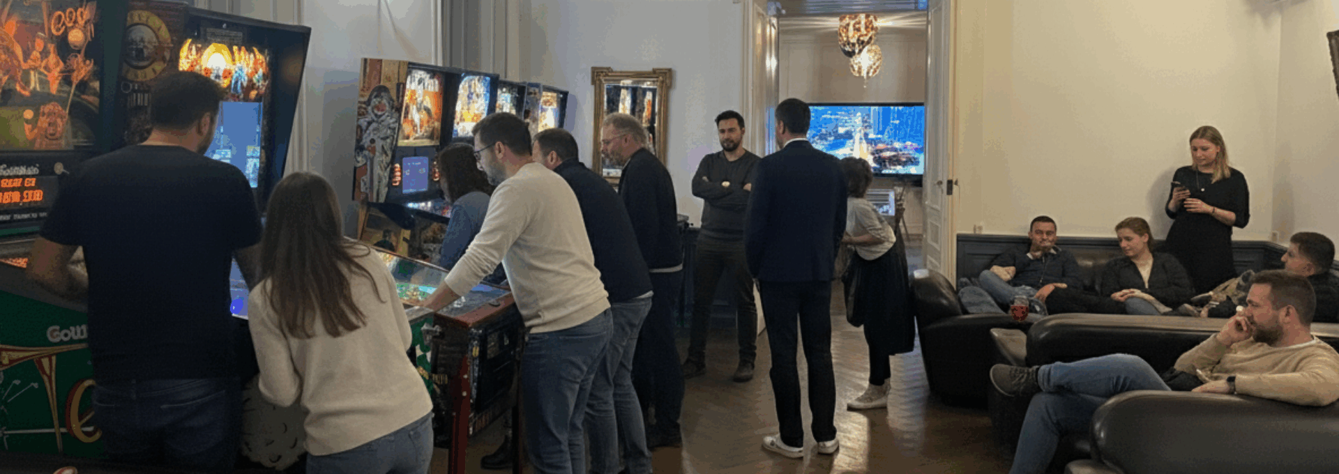 Ensuite, en traversant le parking vous accèderez aux salons, chambres : toutes ces pièces sont remplies de flippers, bornes d'arcade en Freeplay : vous allez pouvoir resserrer ou créer des liens entre vos collaborateurs.